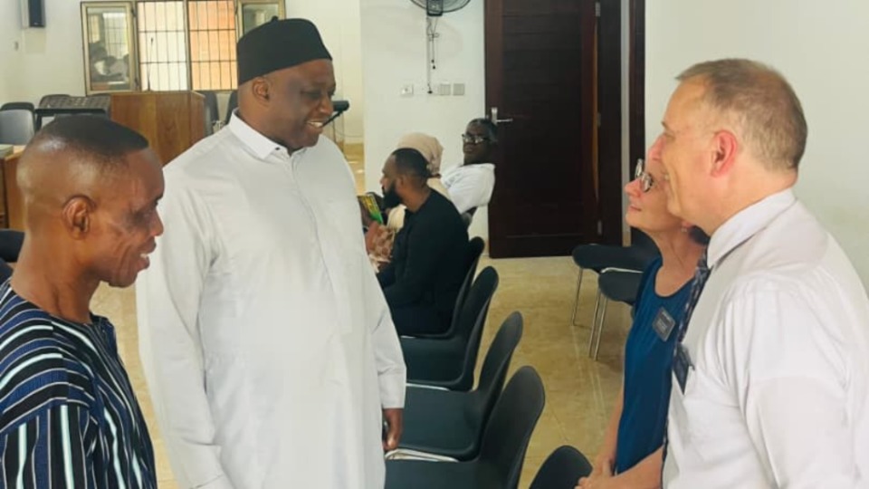 The First Lady and her delegation were received on arrival at the Brusubi Meetinghouse at Brusubi in The Gambia by President Samuel Owusu Amako, President of the Brusubi Branch and the National Communications Director of The Church in The Gambia. Present also were President Albert Alexander, President of the Kanifing Branch, auxiliary leaders of the two branches of The Church in The Gambia, Senior Couple Missionaries Elder and Sister Roberts, full time missionaries, and a section of the members of The Church in The Gambia.