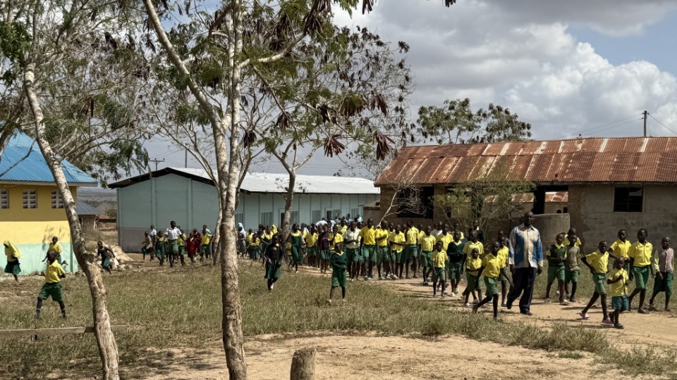 - Leaders-interact-with-children-during-tour-of-new-school-block.--Jila-Primary-School,-September-23,-2025