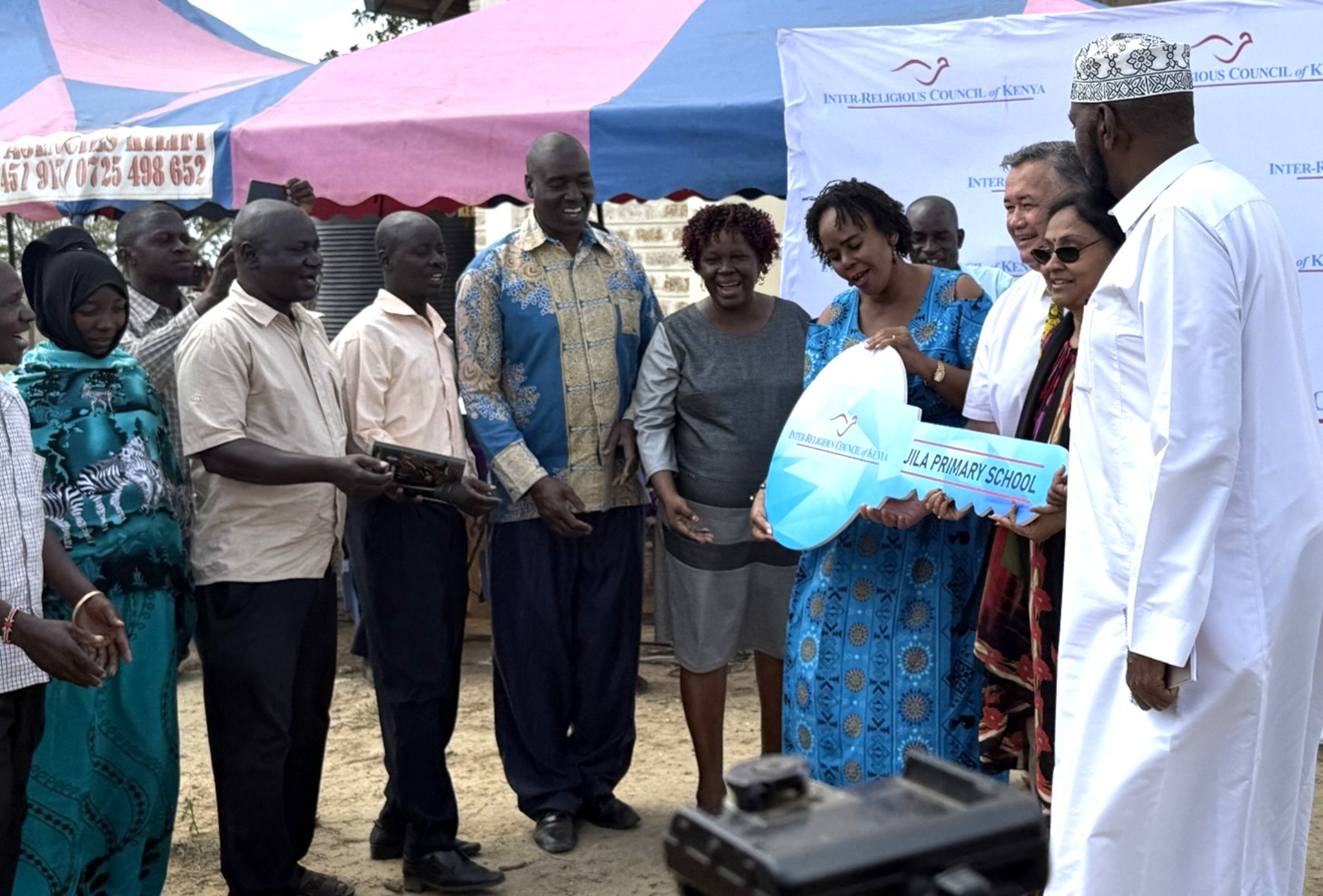 After the tour, the group was led to an area adjacent to the school where pavilions were set up for the handover ceremony. Thoughtful remarks were given by Linus Nsthigai, executive director of IRCK; Bishop Amos Lewa, chair of the Kilifi Interreligious Council; Reverend Sylvia Kadzo of Jila ACK Church; President Onekawa; and Deputy Governor Chibule.