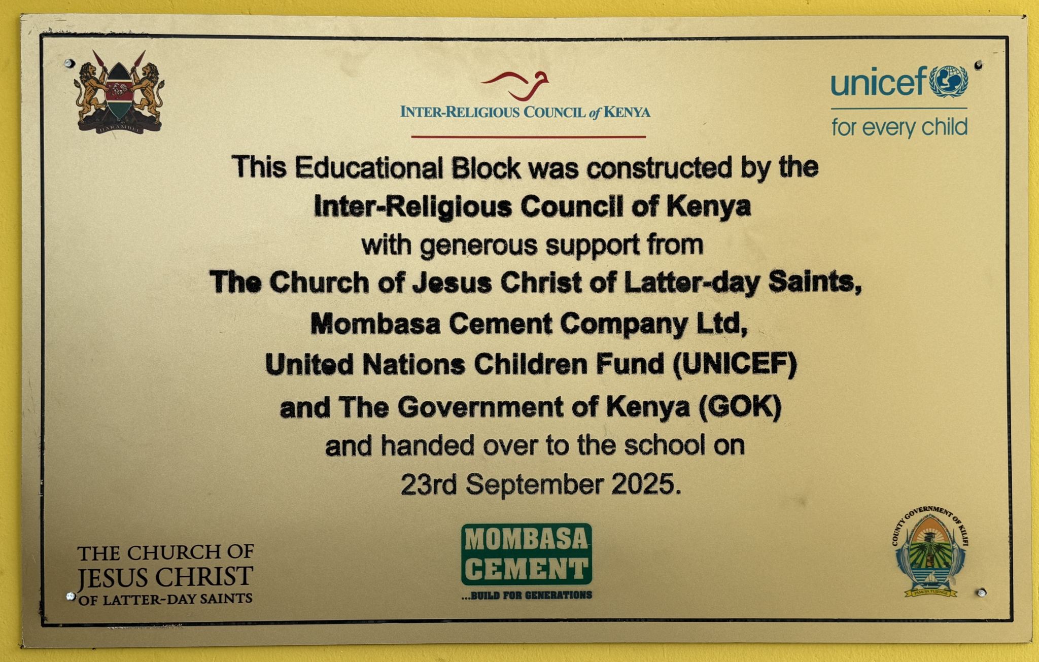 On September 23, 2025, an official handover ceremony was held, which brought together government and religious leaders, community members and school administrators, including Her Excellency Flora Mbetsa Chibule, deputy governor of Kilifi County. Representing the Church were David and Lenise Onekawa, mission leaders of the Kenya Nairobi East Mission.